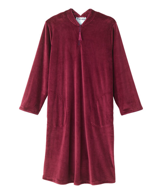 Women's Open Back Plush Nightgown with Zip Front